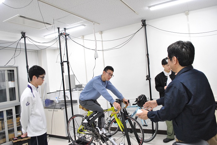 本訪問は、自らが進める課題研究について、大学教員より指導や助言を受けたいとの要望があり実施されたもので、生徒さんが取り組む課題は全10テーマ。各テーマごとに研究室を訪れ、助言を受けたり検証のための実験を体験したりと、自身の課題解決を目指し熱心に取り組んでいました。