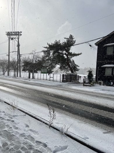 12月に入り、手形キャンパスの周りには雪が降り始めました。息が白くなり、秋田の季節が冬に変わったことを実感しています。以前は紅葉を見ることができた通りも、今は全部真っ白な雪で覆われて、とてもきれいな景色になっています。
