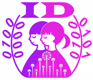 InformaticsのIとData ScienceのD、デジタルの1と0、人間情報・データサイエンス・知能ロボティクスの3領域、秋田大学と情報データ科学部のカラー